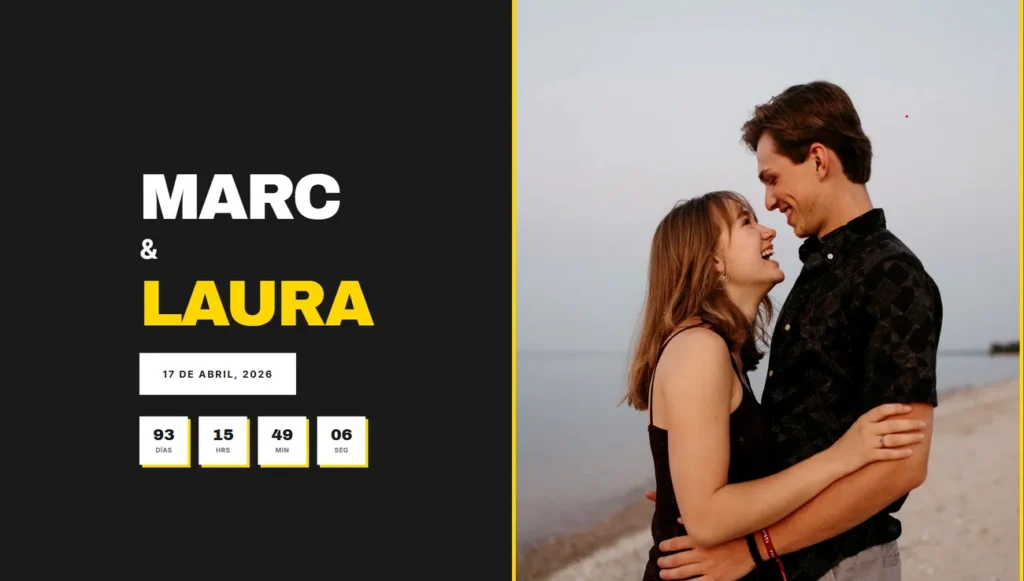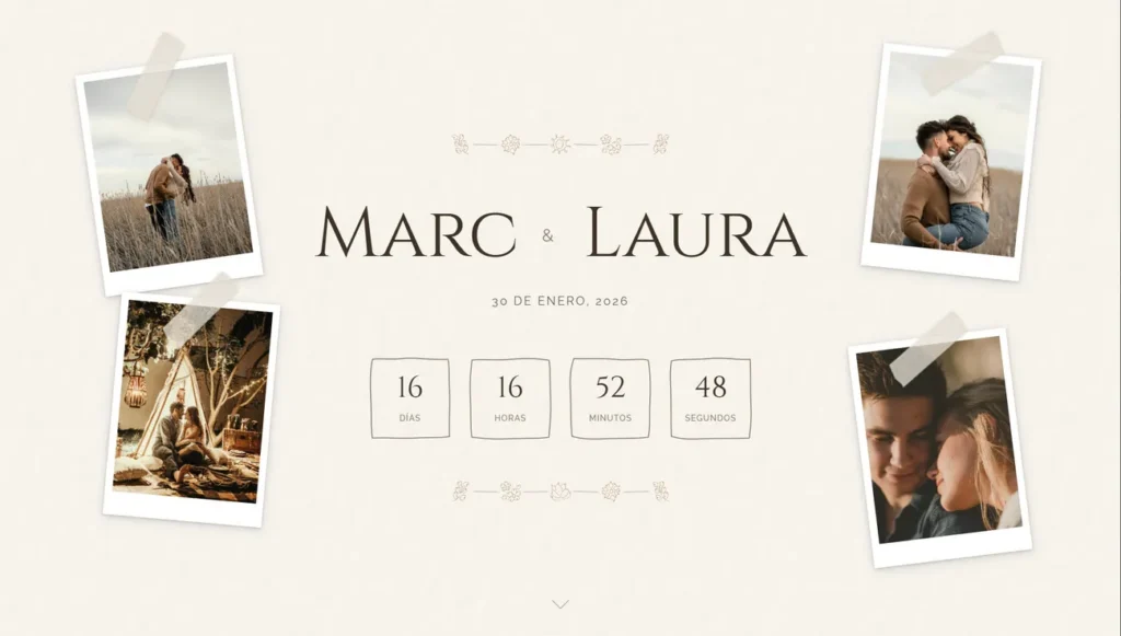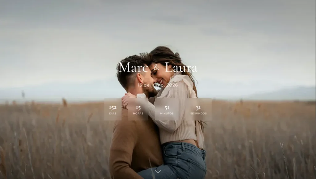 Compartís vuestra web y vuestros invitados tienen toda la info: fecha, lugar, horarios, cómo llegar y confirmar.
