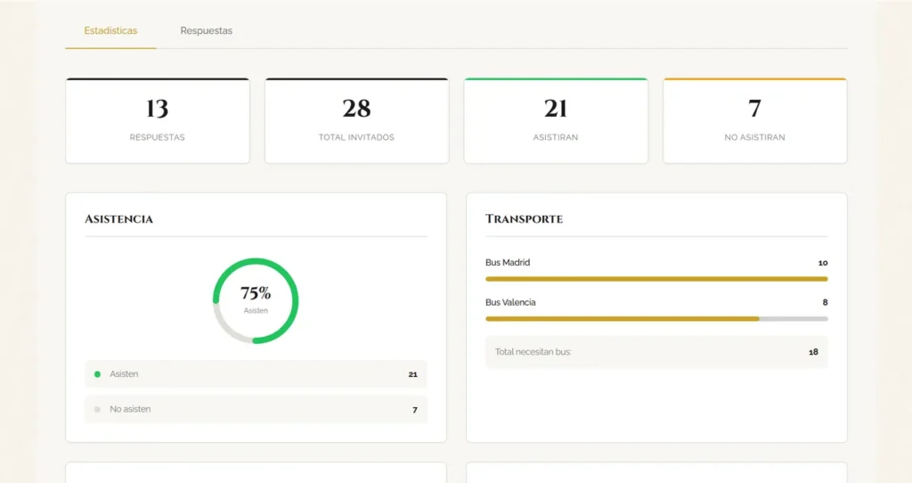 Consultad quién ha confirmado, exportad la lista de invitados y tened todo organizado en un solo sitio.