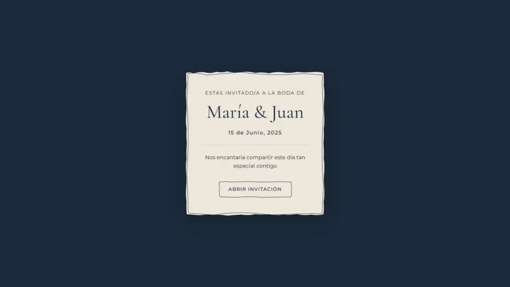 Una web bonita donde vuestros invitados descubren todos los detalles del gran día. Abren la invitación, confirman asistencia y tienen todo lo que necesitan saber.